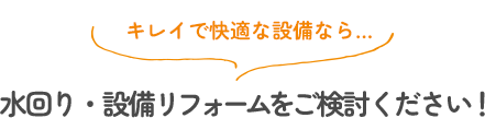 キッチン・トイレ・お風呂といった、水回り設備。汚れが落ちにくい・使いにくいと思い始めたその時が設備の入替え時期です!