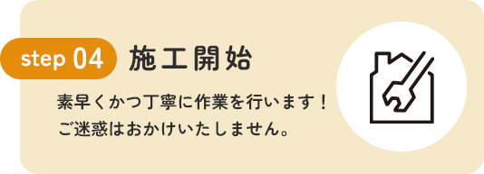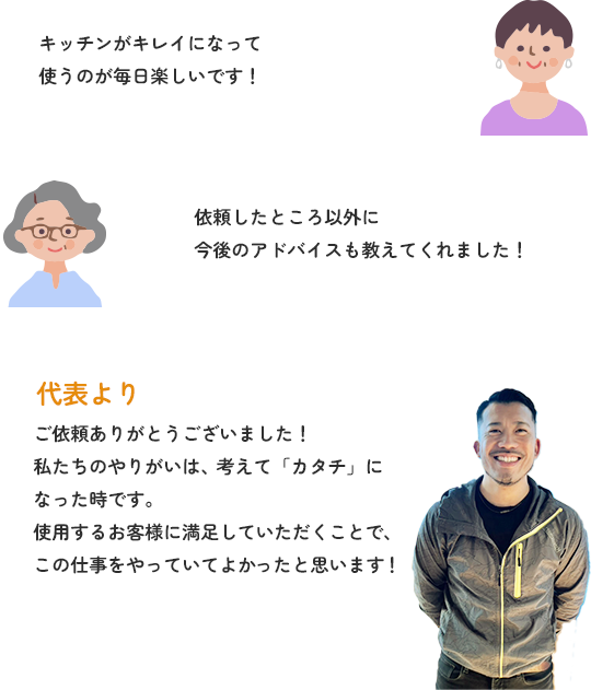 また、丁寧に工事を進めつつ、スピードも大切にします。自宅に業者がいては、お客様に気を遣わせてしまいます。お客様への負担を減らすことも、業者の意識としては大切なのです。