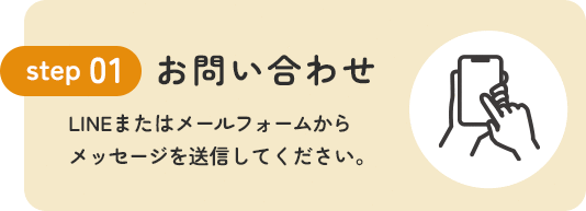 お問い合わせをいただいてから可能な限りは即日ご対応。まずお客様にどのような工程で進めていくか、一つひとつ説明いたします。個人経営だからこそ、一人ひとりのお客様との関わりを大切にしたいです。