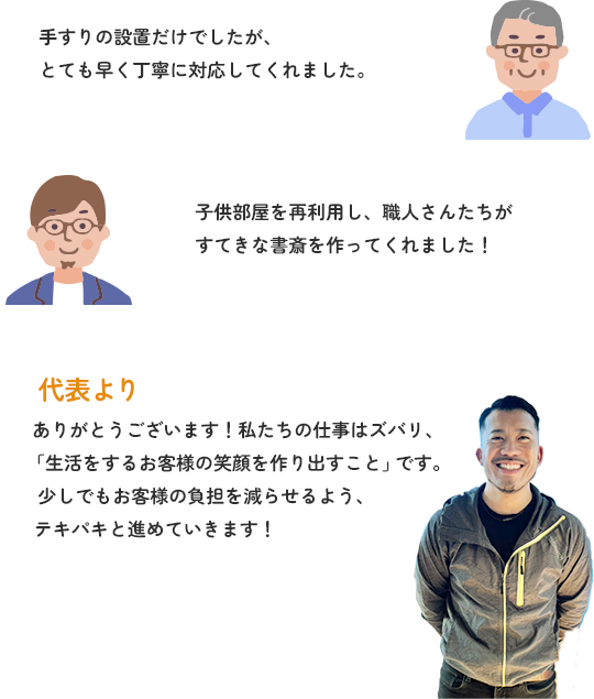 施工を行うのは私たち専門業者ですが、工事を行った場所で生活を営むのはお客様方です。