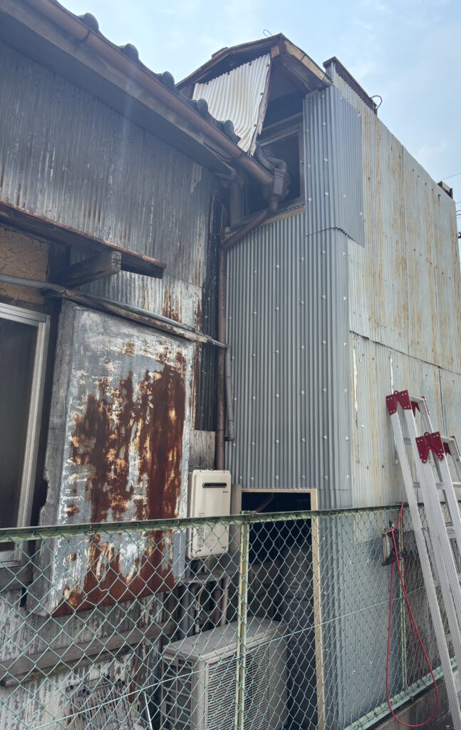 先日、外壁トタンがボロボロで雨漏りがするお宅に修繕工事に行ってきました。 これでは雨漏りしますね💦家自体の骨組みもボロボロな状態ですが、安価にやって欲しい。とのことでした。下地組をして