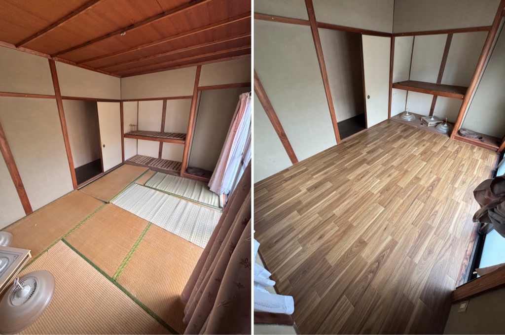 こんにちは。日光建業です。🌞今回は畳を撤去して洋風に変えて欲しいとお客様からのご要望がありました。まずは畳を撤去し、床下地を組み仕上げの下準備をします。今回はクッションフロアが仕上がり